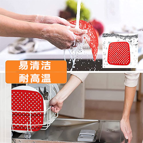 空气炸锅硅胶垫整体厚度比羊皮纸厚很多,不仅不黏手,而且可以重复使用2000多次。它们可以放入镶边烤盘或放在扁平的饼干板上,可承受高达200度的温度。硅胶烤垫有许多凸起的线条,便于内部空气流通,改善热量循环;独特设计引流槽,汁水汁液不粘食物,清洗方便。硅胶烤垫不仅仅局限于烘焙,也可以用它们来加热烤箱里的食物,甚至可以在烤箱里工作。