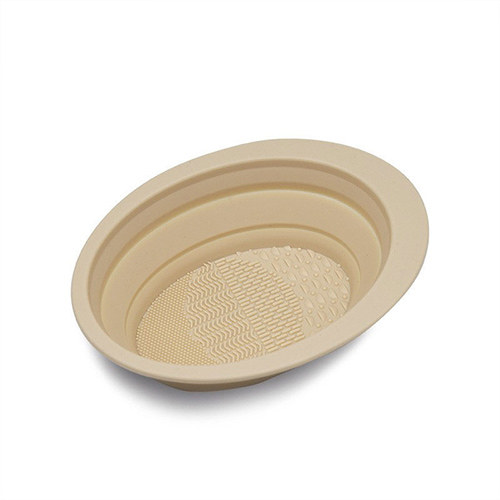 硅胶材质的碗,上面有三种不同的凸起,能照顾到每种化妆刷。