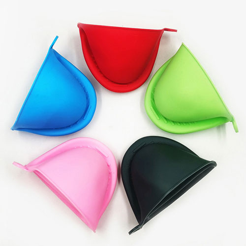 硅胶隔热手夹又叫硅胶隔热手套,硅胶微波炉手套,硅胶防烫伤手套,加厚硅胶石锅炒锅专用防烫手套等。区别于常规手套的手部保暖和劳动防护功效,硅胶隔热手指套主要定位在隔热、防烫伤,适用于家庭厨房以及蛋糕烘焙行业。不分手指的硅胶隔热手套依然是硅胶隔热手指套,主要造型为各种动物形状:青蛙手套、牛头手套、狗头手套等。