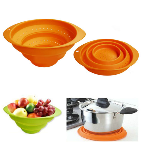 折叠篮不光能盛物滤水,还能充当碗碟和厨具隔热垫,蔬菜篮子,精美的外形还能放在客厅中当作水果篮等等,用途十分广泛。